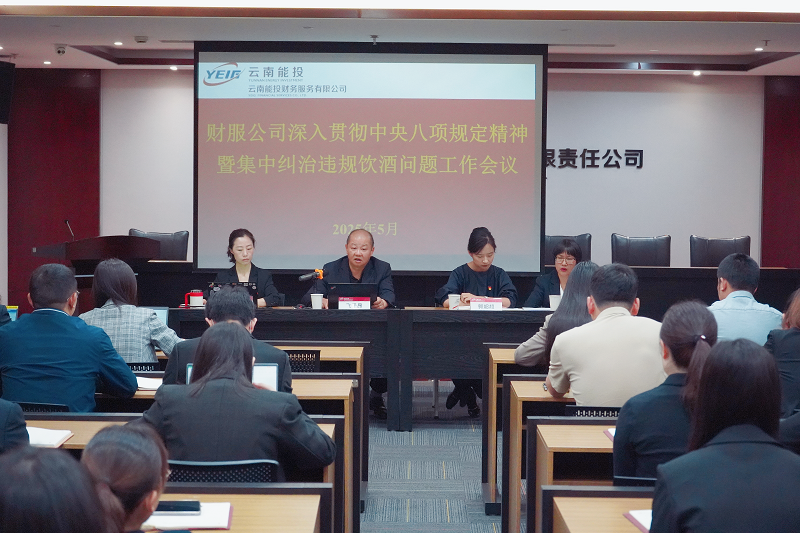 5月20日,财服公司召开深入贯彻中央八项规定精神暨集中纠治违规饮酒问题工作会议,对集中纠治工作进行安排部署,公司党总支书记、执行董事、总经理飞子昂主持会议并讲话。