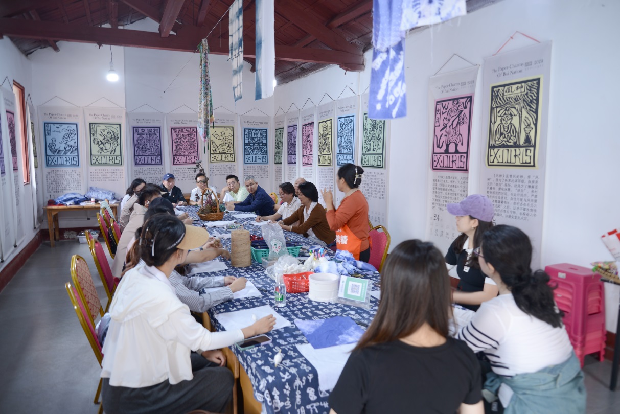 宣誓结束后,全体人员前往云南日报社史馆参观活字印刷博物馆,在讲解员的细致介绍下,干部职工深入了解了活字印刷术的发展历程与文化价值,感受中华优秀传统文化的深厚底蕴。在扎染体验馆,组织开展了非遗文化体验活动,干部职工亲手参与活字印刷、白族扎染制作,在动手实践中沉浸式感受非遗技艺的独特魅力,进一步增强了文化自信与民族自豪感。