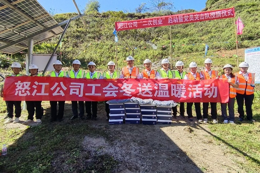 10月30日,怒江公司工会到片马光伏发电项目现场开展“秋冬送温暖”慰问活动,为项目建设一线14名职工送上保暖衣物和鞋子,让职工深切感受到怒江公司大家庭的温暖与关怀。