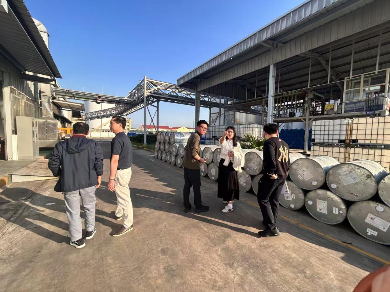烧碱及PVC组同步发力,于11月26日-28日重点走访海防工业园区某化工企业,与客户深入交流越南烧碱市场现状、现有合作模式痛点及未来合作空间;随后拜会天虹工业园区负责人,就烧碱业务落地展开深度洽谈,目前已初步达成推动园区内需求企业试单的合作意向,迈出业务破冰关键一步。调研中,工作组还实地参观了客户烧碱储罐区,全面了解当地仓储物流配套,为后续优化供应链布局提供第一手资料。
