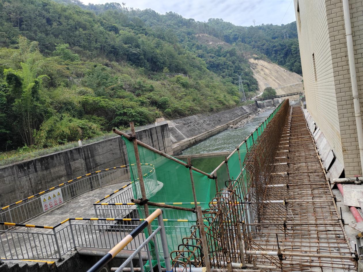苏帕河公司腾龙桥二级水电站在主厂房临河道侧加高防浪墙,为防范主汛期特大洪水做好准备。