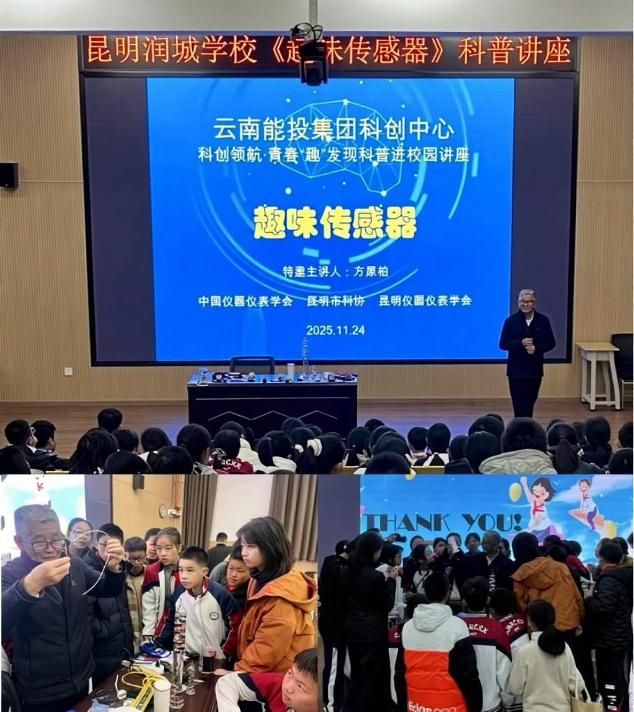 为积极履行国有企业社会责任,助力青少年科学素养提升,2025年11月24日上午,由集团工会牵头,集团科技&数字创新中心走进昆明润城学校初中部,成功举办“科创领航·青春‘趣’发现”科普讲座。