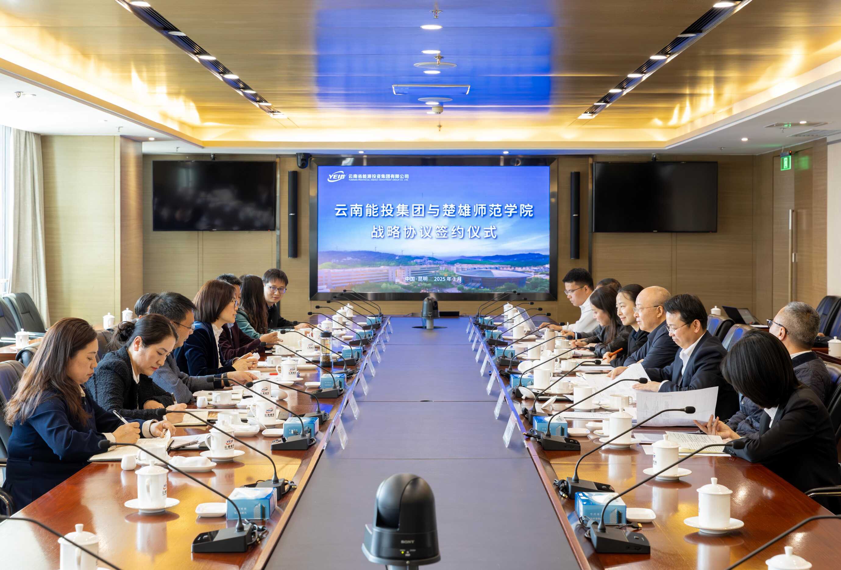 楚雄师范学院党委副书记杨宏仁、副校长何永泰、对外合作交流处、办公室、物理与电气能源工程学院、科研院相关负责人,能投集团战略部、组织人力部、绿能集团、能投股份、电投公司、研究院相关负责人参加会议。