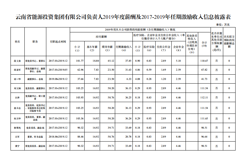 威廉希尔500欧洲指数负责人2019年度薪酬及2017-2019年任期激励收入信息披露表